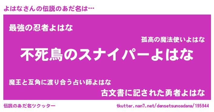 | 胡散臭い通販商品みたいなあだ名 | 『モテモテ間違いなし霊験あらたかなお札…その名も「よはな」』 |