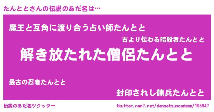 | 意味不明あだ名 | 『住所不定無職たんとと(41歳)』 |
