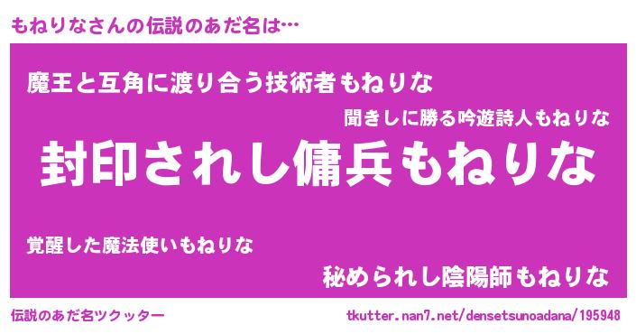 | ヒーロー風カッコイイあだ名 | 『スーパーモネリナ』『愛の使者もねりな』 |