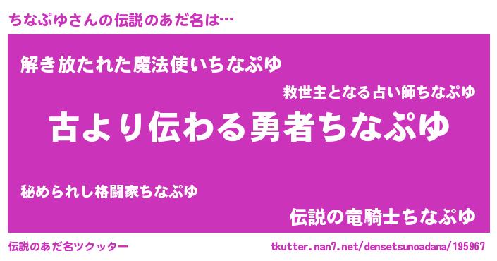 | ヘコむあだ名 | 『ちなぷゆ(苦笑)』『ちなを』 |