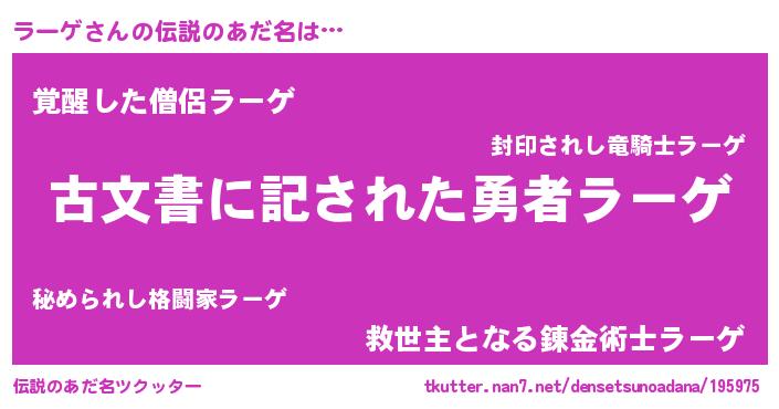 | 意味不明あだ名 | 『自称ラーゲ』『永久保存ラーゲ』 |