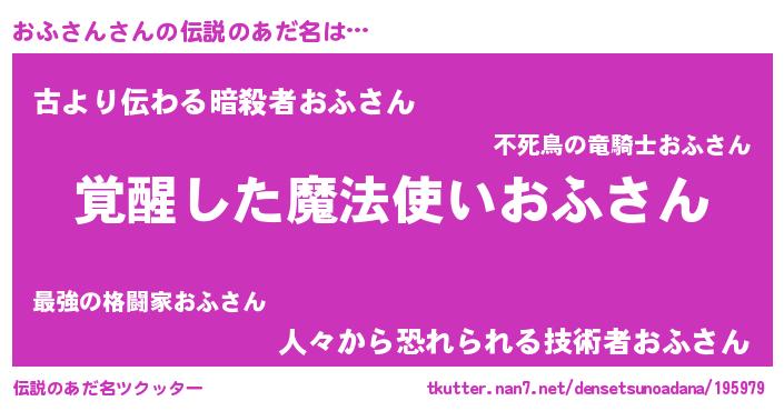 | 胡散臭い通販商品みたいなあだ名 | 『あなたにだけ特別に提供する100年もののヴィンテージワイン…その名も「おふさん」』 |