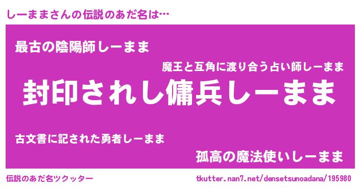 | 意味不明あだ名 | 『ペロリンしーまま』『自称しーまま』 |