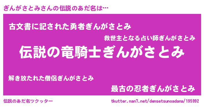 | ヒーロー風カッコイイあだ名 | 『スーパーギンガサトミ』『仮面ギンダー』 |