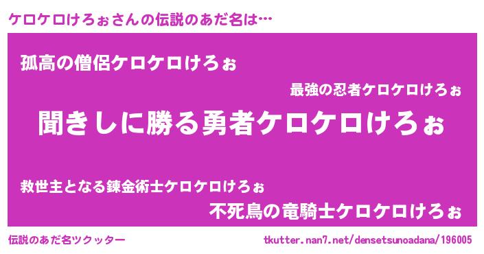 | ヒーロー風カッコイイあだ名 | 『ネオケロケロケロォ』『魔戒騎士ケロ』 |
