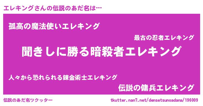 | ヒーロー風カッコイイあだ名 | 『ネオエレキング』『黄金騎士エレ』 |