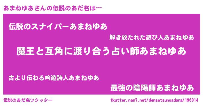 | 男性向けラノベタイトル風あだ名 | 『転生したらあまねゆあだった件』 |
