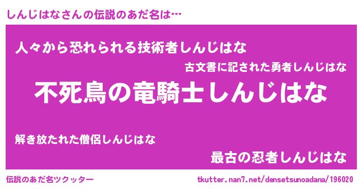 | 男性向けラノベタイトル風あだ名 | 『この素晴らしい世界にしんじはなを!』 |