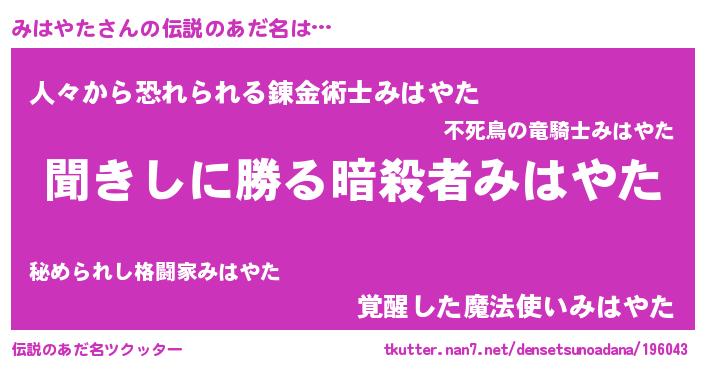 | 意味不明あだ名 | 『永久保存みはやた』 |