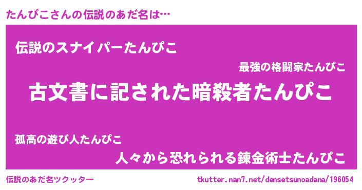 | 男性向けラノベタイトル風あだ名 | 『たんぴこに滅ぼされるだけの簡単なお仕事です』 |