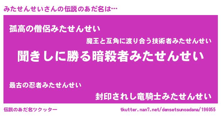 | ヒーロー風カッコイイあだ名 | 『仮面ミタダー』『ネオミタセンセイ』 |