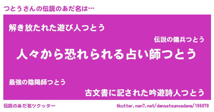 | ヒーロー風カッコイイあだ名 | 『友情の使者つとう』『魔戒騎士ツト』 |
