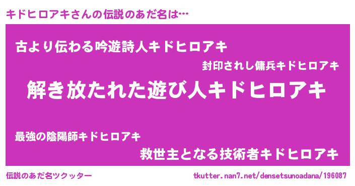 | 意味不明あだ名 | 『住所不定無職キドヒロアキ(79歳)』 |