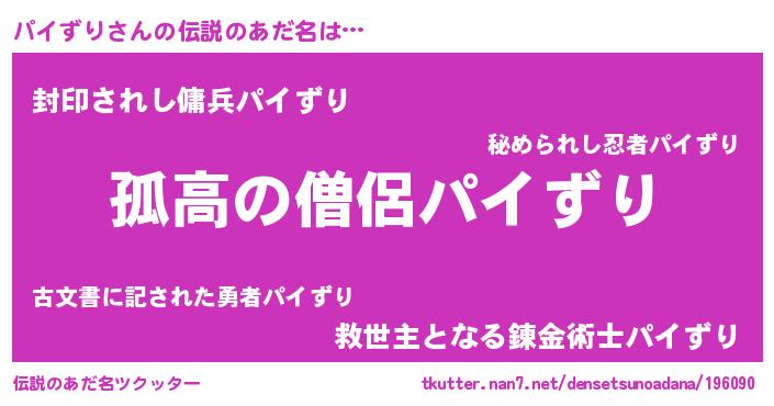 | ヒーロー風カッコイイあだ名 | 『仮面パイダー』『暗黒騎士パイ』 |