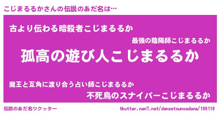 | 胡散臭い通販商品みたいなあだ名 | 『信頼と実績のペンダント…その名も「こじまるるか」』 |