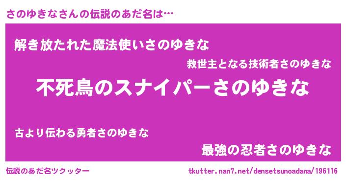 | 意味不明あだ名 | 『自称さのゆきな』『ペロリンさのゆきな』 |