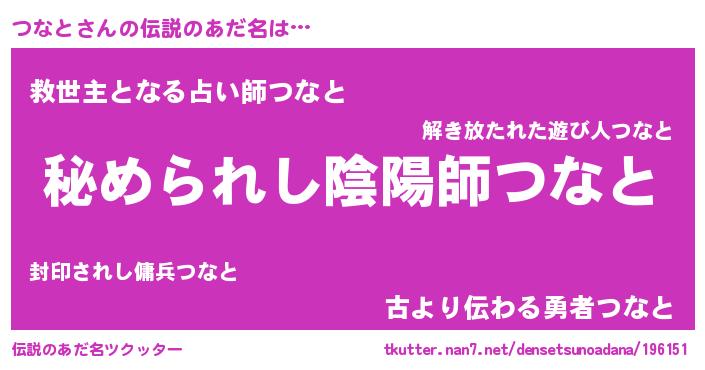 | ヘコむあだ名 | 『つくし』『つなと(爆)』『つなもー』 |