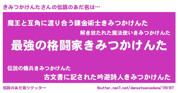 | 意味不明あだ名 | 『きみつかけんたフォーエバー』 |