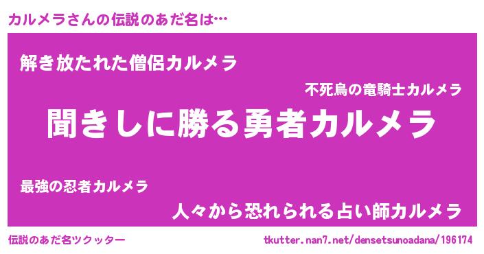 | ヘコむあだ名 | 『カルメラ(苦笑)』『カルを』 |