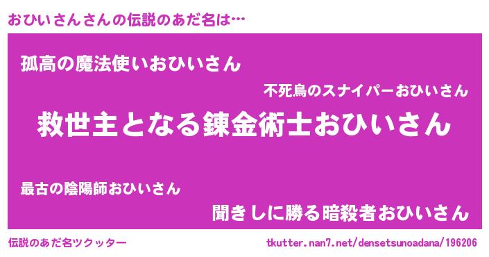 | ヒーロー風カッコイイあだ名 | 『最強戦士オヒイサン』『暗黒騎士オヒ』 |