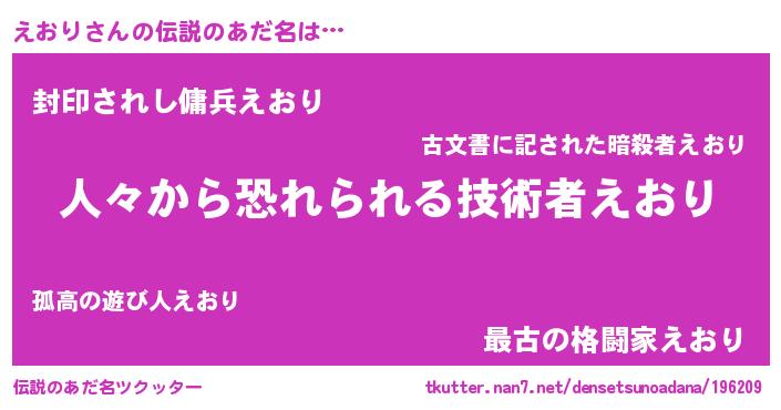 | 女子向けラノベタイトル風あだ名 | 『えおりアンティーク』 |