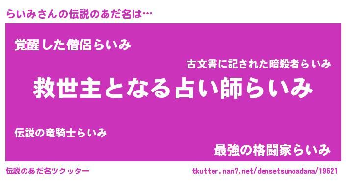 | 胡散臭い通販商品みたいなあだ名 | 『モンドセレクションを受賞したイリジウム磁石…その名も「らいみ」』 |