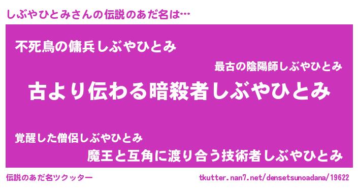 | 意味不明あだ名 | 『永久保存しぶやひとみ』 |
