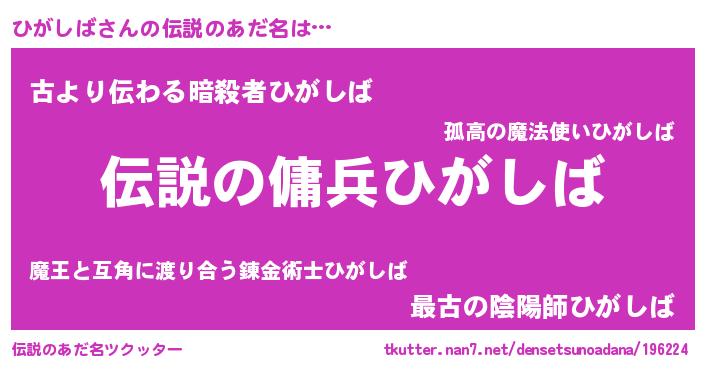 | 男性向けラノベタイトル風あだ名 | 『ひがしばの憂鬱』『魔弾の王とひがしば』 |