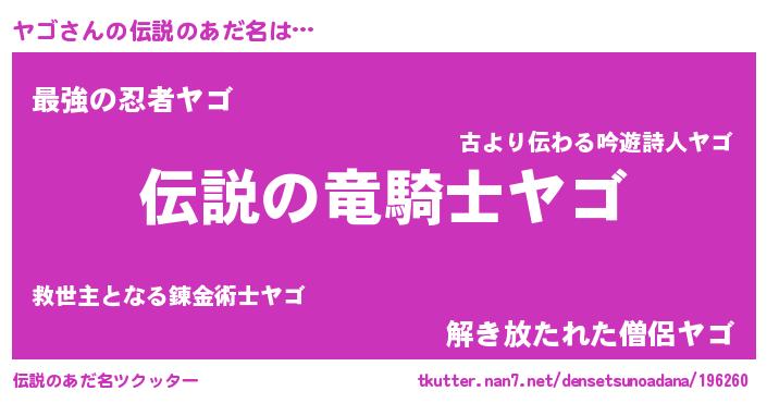 | ヒーロー風カッコイイあだ名 | 『スーパーヤゴ』『ウルトラヤゴマン』 |