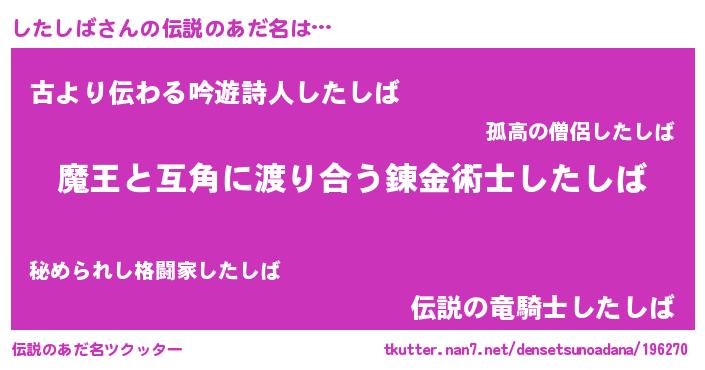 | ヒーロー風カッコイイあだ名 | 『慈愛の使者したしば』『ネオシタシバ』 |