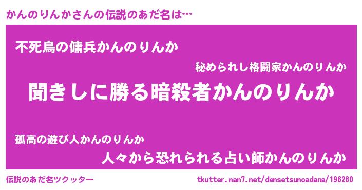 | 女子向けラノベタイトル風あだ名 | 『異世界で失敗しない100のかんのりんか』 |