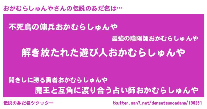 | 意味不明あだ名 | 『住所不定無職おかむらしゅんや(89歳)』 |