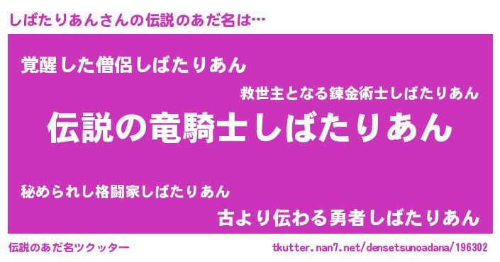 | 意味不明あだ名 | 『自称しばたりあん』 |