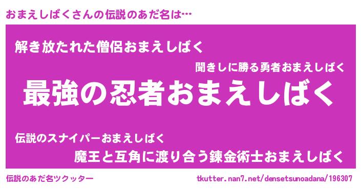 | ファンタジー風あだ名 | 『エターナルオマエシバクー』 |