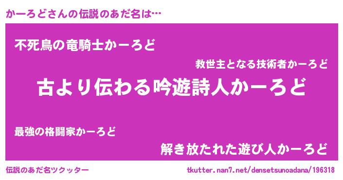| 男性向けラノベタイトル風あだ名 | 『かーろどという概念が存在しない退屈な世界 』 |