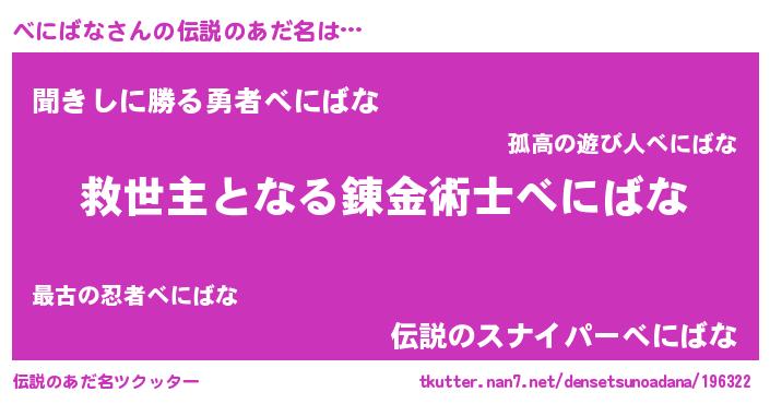 | 意味不明あだ名 | 『自称べにばな』『永久保存べにばな』 |