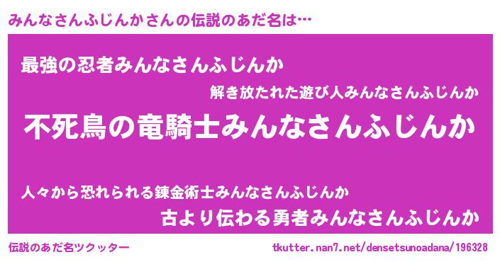 | ヒーロー風カッコイイあだ名 | 『スーパーミンナサンフジンカ』 |