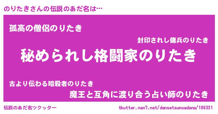 | 意味不明あだ名 | 『のりたきフォーエバー』『自称のりたき』 |