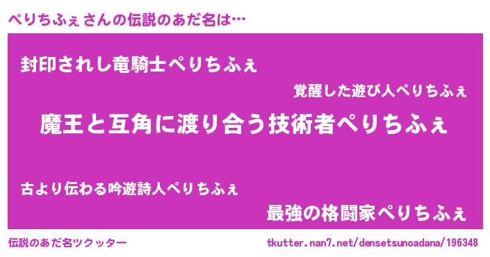 | ヒーロー風カッコイイあだ名 | 『慈愛の使者ぺりちふぇ』『仮面ペリダー』 |