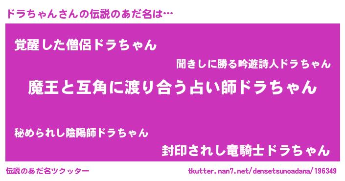| 男性向けラノベタイトル風あだ名 | 『転生したらドラちゃんだった件』 |