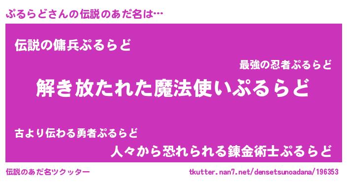 | 意味不明あだ名 | 『とにかく怪しいぷるらど』 |
