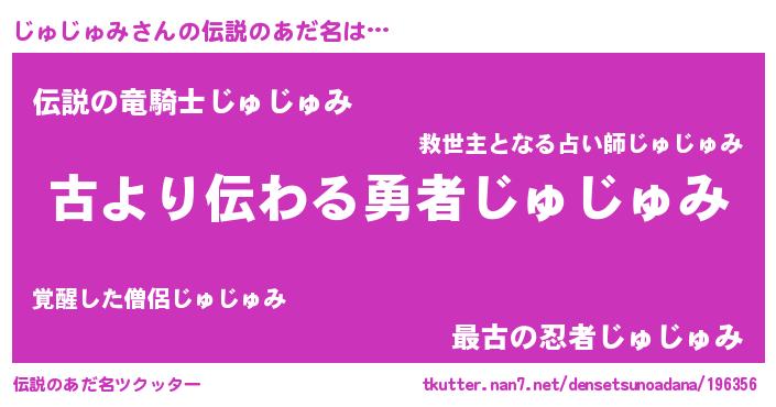 | 男性向けラノベタイトル風あだ名 | 『じゅじゅみという概念が存在しない退屈な世界 』 |