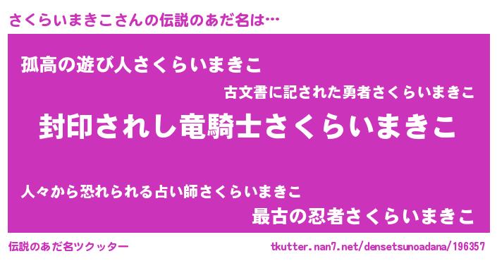 | 恥ずかしいあだ名 | 『プリティーさくらいまきこ』『さくちん』 |