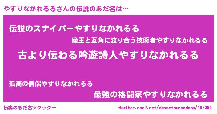 | 意味不明あだ名 | 『永久保存やすりなかれるる』 |