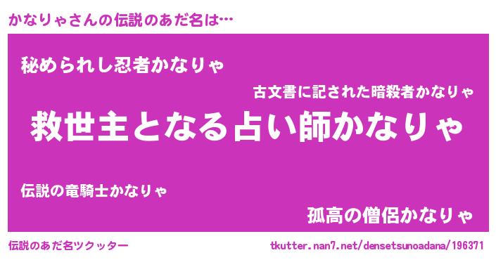 | 男性向けラノベタイトル風あだ名 | 『かなりゃに滅ぼされるだけの簡単なお仕事です』 |