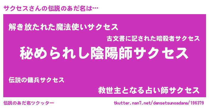 | 男性向けラノベタイトル風あだ名 | 『サクセススレイヤー』 |
