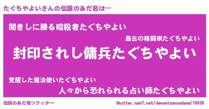 | ヘコむあだ名 | 『たぐにゅー』『たぐちやよい(苦笑)』 |