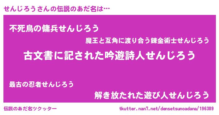 | 意味不明あだ名 | 『住所不定無職せんじろう(1歳)』 |