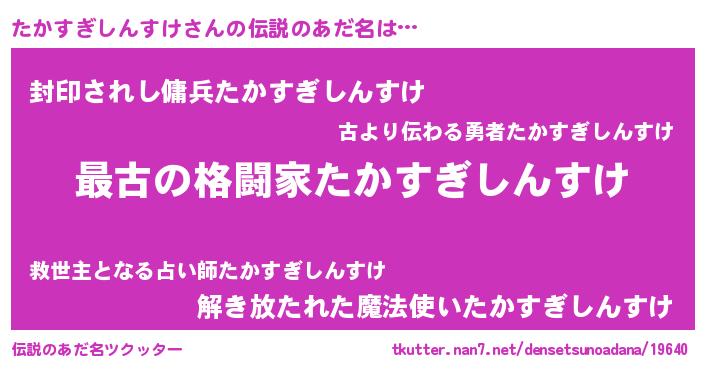| 意味不明あだ名 | 『たかすぎしんすけフォーエバー』 |