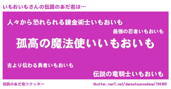 | 意味不明あだ名 | 『とにかく怪しいいもおいも』 |